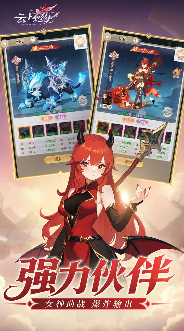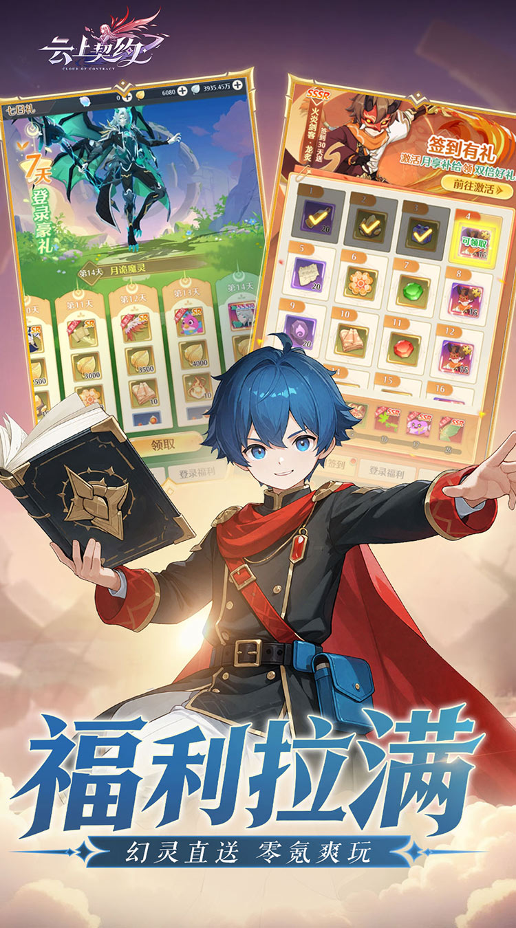 《云上契约》是一款异世界日系幻想风RPG放置手游。剑与魔法的魔幻大陆,在远古时期,强大的龙族率领其他生物包括人类对大陆进行开拓与发展。到了现代,艾瑞利亚大陆变成生机勃勃的丰饶之地,不同地貌生存着不同的精灵与魔物,但龙族却在岁月中不见了踪影。阿斯塔亚王国的冒险王罗布诺,在云端发现消逝许久龙族的踪迹,此举激发了举国的寻龙狂潮。国王便立下契约称率先找到龙的冒险家,便能获得王国的最高荣誉——冒险王,至此开启了一段“大冒险时代”